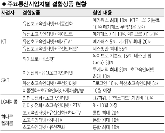 Áö³´Þ°ú ÀÌ´Þ 13ÀÏ ¡´À̵¿ÀüÈ+Ãʰí¼ÓÀÎÅͳݡµ ¡´À¯¼±+¹«¼±ÀÎÅͳݡµ ¡´À̵¿ÀüÈ+À§¼ºDMB¹æ¼Û¡µÀÇ °áÇÕ»óǰÀ» ¼±º¸¿´´ø SKTµµ 10¿ù ¡´À̵¿ÀüÈ+Ãʰí¼ÓÀÎÅͳÝ+ÄÉÀÌºí¹æ¼Û¡µÀ» °áÇÕÇÏ´Â »ïÁß°áÇÕ¼ºñ½º(TPS)¸¦ ÁغñÇϰí ÀÖ´Ù. ¶Ç °¡ÀÔÀÚ È®º¸È¿°ú¸¦ ³ôÀ̱â À§ÇØ ±âÁ¸ £§Åõ°Ô´õ ¿ä±ÝÁ¦£§¿¡¸¸ Àû¿ëÇß´ø ÇÒÀÎ ´ë»óÀ» °³ÀÎÀ¸·Î±îÁö È®´ëÇÏ´Â ¹æ¾ÈÀ» ÃßÁøÁßÀÌ´Ù. SKT´Â À̸¦ ÅëÇØ ÇöÀç 5,000¸í¿¡ ºÒ°úÇÑ °áÇÕ»óǰ °¡ÀÔÀÚ¸¦ ´Ã¸®´Â µ¥ ÁÖ·ÂÇÒ ¹æÄ§ÀÌ´Ù.