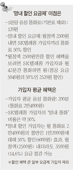 ±×·¡ÇÈ ÂüÁ¶ÀÌ¿¡ µû¶ó SKÅÚ·¹ÄÞ °¡ÀÔÀÚ³¢¸® ¸Å´Þ 42ºÐ ³Ñ°Ô ÅëÈÇÏ´Â °í°´À̶ó¸é ÀÌ ¿ä±ÝÁ¦¿¡ °¡ÀÔÇÏ´Â °Ô ÀÌÀÍÀÌ´Ù. SKÅÚ·¹ÄÞ °¡ÀÔÀÚ³¢¸® Åëȸ¦ ¸¹ÀÌ Çϸé ÇÒ¼ö·Ï ¿ä±Ý Àý°¨¾× ¶ÇÇÑ Ä¿Áø´Ù.