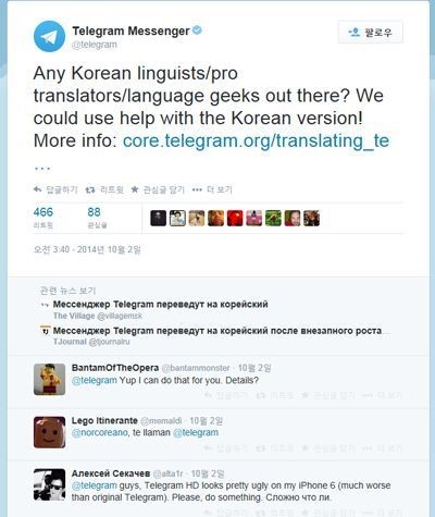 ÅÚ·¹±×·¥Àº Áö³­ 2ÀÏ(ÇöÁö½Ã°£) °ø½Ä Æ®À§Å͸¦ ÅëÇØ Çѱ¹¾î ¹ø¿ª Àü¹®°¡¸¦ ¸ðÁýÇÑ´Ù°í ¹àÇû´Ù. ¶Ç ȸ»ç ÃøÀº ÅÚ·¹±×·¥ ÇÑ±Û ¹öÀüÀ» À§ÇÑ µµ¿òÀÌ ÇÊ¿äÇÏ´Ù°í °ÔÀçÇß´Ù.