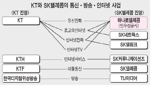 SKÅÚ·¹ÄÞÀÌ Àμö¿¡ ¼º°øÇÒ °æ¿ì ±¹³» Åë½Å½ÃÀåÀº £§KT±×·ì£§°ú £§SKÅÚ·¹ÄÞ+Çϳª·ÎÅÚ·¹ÄÞ£§ÀÇ ¾ç° ±¸µµ·Î ±Þ¼ÓÈ÷ ÀçÆíµÉ Àü¸ÁÀÌ´Ù.