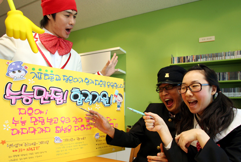 ÀԽà Áغñ¿¡ ÁöÄ£ ¼öÇè»ýµéÀ» À§·ÎÇϱâ À§ÇÑ ÀÌÅë»çÀÇ À̺¥Æ®·Î ´Ùä·Ó´Ù. KTFÀÇ À½¾ÇÆ÷ÅÐ ¡®µµ½Ã¶ô¡¯¿¡¼´Â ¼öÇè»ýÀ» ´ë»óÀ¸·Î ³»´Þ 7ÀϱîÁö ÇÑ ´Þ°£ µµ½Ã¶ô ¹«·á ÀÌ¿ë À̺¥Æ®¸¦ ÁøÇàÇÑ´Ù. SKÅÚ·¹ÄÞÀº 30ÀϱîÁö ±âÇÁƼÄÜ ¼ºñ½º ¡®¼ö´ÉÀÀ¿ø À̺¥Æ® ÆäÀÌÁö¡¯¿¡¼ ¼öÇè»ýÀ» ÀÀ¿øÇÏ´Â ¸Þ½ÃÁö¿Í »ç¿¬À» ³²±â¸é Ãß÷À» ÅëÇØ ¹Ý Àüü Ä£±¸µé¿¡°Ô ¹ö°ÅÅ· ¿ÍÆÛ ¼¼Æ®¿Í ÈÞ´ëÆù ¾×¼¼¼¸®¸¦ ¼±¹°ÇÏ´Â À̺¥Æ®¸¦ ¹úÀδÙ. KTF´Â ¼öÇèÇ¥¸¦ ÁöÂüÇÏ¸é ºÎ»ê KTF ¸ÅÁ÷À®½º Ȩ°æ±â(23ÀÏ)¿¡ ¹«·á·Î ÀÔÀåÇÒ ¼ö ÀÖµµ·Ï Çß´Ù.