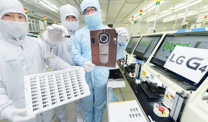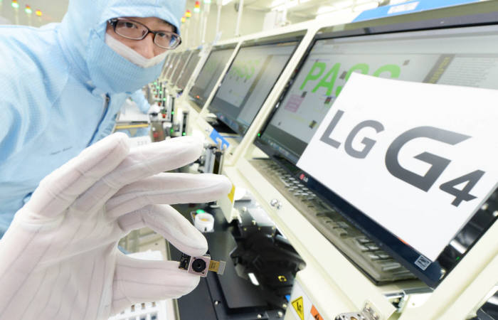 ¡´LGÀüÀÚ Àü·« ½º¸¶Æ®Æù G4ÀÇ Ä«¸Þ¶ó¸ðµâÀ» ¾ç»êÇϰí ÀÖ´Â LGÀ̳ëÅØ ±¤ÁÖ°øÀå. LGÀ̳ëÅØ Á÷¿øµéÀÌ G4ÀÇ Ä«¸Þ¶ó¸ðµâÀ» ¼Ò°³Çϰí ÀÖ´Ù. G4´Â ÇöÁ¸ÇÏ´Â Ä«¸Þ¶ó Áß °¡Àå ³·Àº F 1.8 Á¶¸®°³°ªÀ» °¡Áø 1600¸¸ È­¼Ò OIS Ä«¸Þ¶ó ¸ðµâÀ» žÀçÇß´Ù. ¡´»çÁø LGÀüÀÚ Á¦°ø¡µ¡µ