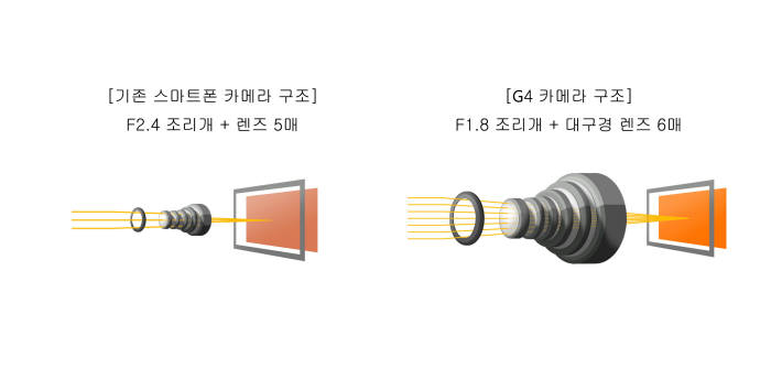 LGÀüÀÚ°¡ ³»¼¼¿ì°í ÀÖ´Â G4 ÃÖ´ë °­Á¡ Áß Çϳª´Â Ä«¸Þ¶ó´Ù. G4¿¡ ÀåÂøµÈ ÈĸéÄ«¸Þ¶ó´Â ÇöÁ¸ Ä«¸Þ¶ó Áß °¡Àå ³·Àº F1.8 Á¶¸®°³°ªÀ» ±¸ÇöÇß´Ù. ¼ýÀÚ°¡ ³·À»¼ö·Ï ¼º´ÉÀÌ ¶Ù¾î³ª´Ù. ¾îµÒ ¼Ó¿¡¼­µµ ¹àÀº È­¸éÀ» ¸¸µé¾î³½´Ù. ±¹³» ÃÖÃÊ·Î Àü¸é 800¸¸ È­¼Ò Ä«¸Þ¶ó¸¦ ¹èÄ¡Çß´Ù. ÀÌ´Â 6°³¿ù Àü Ãâ½ÃµÈ ¾ÖÇà ¾ÆÀÌÆù6(Àü¸é 210¸¸ È­¼Ò¡¤F2.2)´Â ¹°·ÐÀ̰í ÀÌ´Þ Ãâ½ÃµÈ »ï¼º °¶·°½ÃS6(Àü¸é 500¸¸ È­¼Ò¡¤F1.9)º¸´Ùµµ ¶Ù¾î³ª´Ù. G4 ÈĸéÄ«¸Þ¶ó´Â 1600¸¸È­¼Ò·Î °¶·°½ÃS6¿Í µ¿ÀÏÇÏ´Ù.