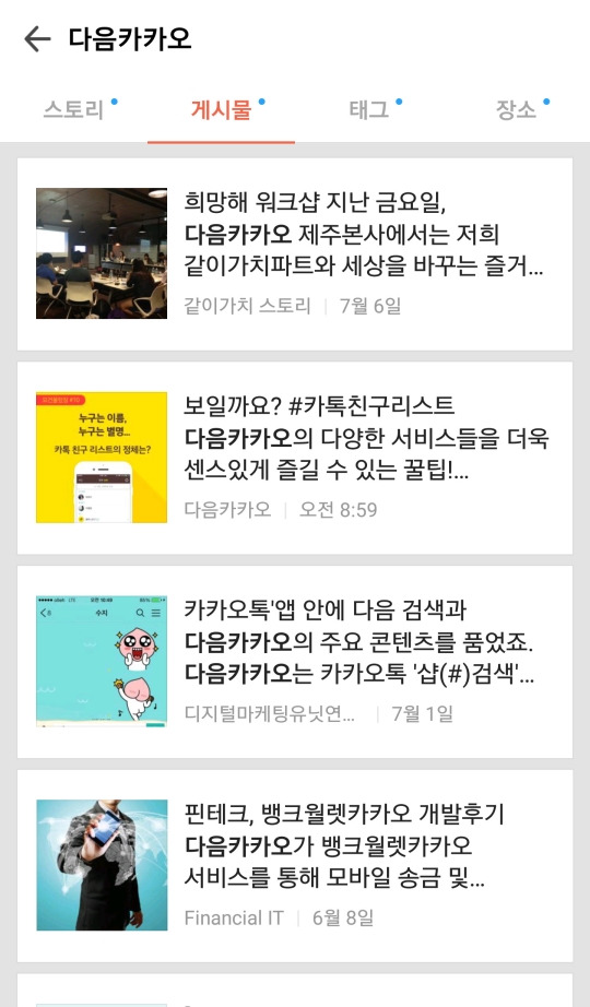 īī¿À½ºÅ丮 °Ô½Ã¹° ³ëÃâÀº ¿À´Â 28ÀϺÎÅÍ Ä«Ä«¿À°Ë»ö¿¡¼µµ ÀÌ·ïÁø´Ù.