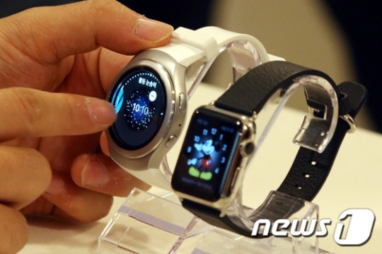 µÎ Á¦Ç°ÀÇ °¡Àå Å« Â÷ÀÌ´Â µð½ºÇ÷¹ÀÌ ¸ð¾ç¿Í Á¶ÀÛ ¹ýÀÌ´Ù. ±â¾îS2´Â ½ÇÁ¦ ½Ã°è°°Àº È­¸é¿¡ ½Ã°è Å׵θ®(º£Á©)À» µ¹·Á »ç¿ëÇÑ´Ù. ¾ÖÇÿöÄ¡´Â ½Ã°è ¿·¸é¿¡ ´Þ¸° ¿ëµÎ¸¦ »ç¿ëÇÑ´Ù. ¾÷°è °ü°èÀÚ´Â £¢½º¸¶Æ®¿öÄ¡´Â µð½ºÇ÷¹À̰¡ À۱⠶§¹®¿¡ ¼Õ°¡¶ôÀ¸·Î ÅÍÄ¡¸¦ Çϸé È­¸éÀ» °¡·Á ºÒÆíÇØ ÅÍÄ¡ ¿ÜÀÇ Á¶ÀÛ ¹æ¹ýÀÌ Áß¿äÇØÁö°í ÀÖ´Ù£¢°í ¼³¸íÇß´Ù.