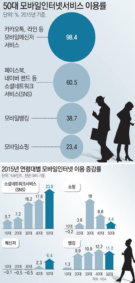 20, 30´ëÀÇ ÀüÀ¯¹°·Î ¿©°ÜÁ³´ø ¸ð¹ÙÀÏ ÀÎÅͳݼ­ºñ½º¿¡ 50´ë°¡ ÀûÀÀÀ» ³¡³Â´Ù.