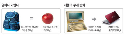 ½ÇÁ¦·Î ÈÞ´ëÆù°ú µðÄ«, MP3Ç÷¹ÀÌ¾î µî ¼ÒÇü ITÁ¦Ç°±ºÀº £§±â´É£§º¸´Ù £§¸Ú£§À» À§ÇØ °¡º­¿öÁø´Ù. 1983³â ¸ðÅä·Î¶ó°¡ Ãâ½ÃÇÑ ÈÞ´ëÆù £§´ÙÀ̳ªÅÃ8000X£§ÀÇ ¹«°Ô´Â 793gÀ¸·Î £§µé°í ´Ù´Ï´Â Èä±â£§·Î ºÒ·ÈÁö¸¸, ¿äÁò ÈÞ´ëÆùµéÀº 100g ³»¿Ü´Ù.
