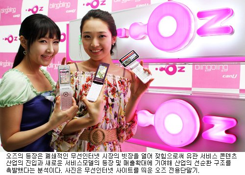 ¿ÀÁîÀÇ µîÀåÀº ¸ð¹ÙÀÏ »ê¾÷ ÀüÈĹ濡µµ ÀûÀÝÀº ¿µÇâÀ» ¹ÌÄ¡°í ÀÖ´Ù. ÀÌ¹Ì À¯¼±À¥ ¼­ºñ½º ½ÃÀåÀÇ °­ÀÚÀÎ NHN, ´ÙÀ½, KTH, G¸¶ÄÏ µîÀÌ ¸ð¹ÙÀÏ È¯°æ¿¡ ¸Â´Â À¥»çÀÌÆ®¸¦ ¾Õ´ÙÅý ±¸ÃàÇϰí ÀÖ´Ù. À̵éÀº ÀÌ¹Ì PDAÆùÀÌ µîÀåÇÑ ¼ö³â ÀüºÎÅÍ ¸ð¹ÙÀÏ ÀÎÅͳݽÃÀåÀ» ÁÖ¸ñÇØ¿ÔÁö¸¸ º»°ÝÀûÀÎ ½ÃÀåÁøÀÔÀ» °áÁ¤ÇÏ°Ô µÈ °ÍÀº ¿ÀÁîÀÇ µîÀåÀÌÈÄ´Ù.