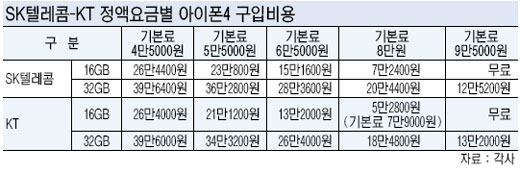 ½º¸¶Æ®Æù Á¤¾×¿ä±Ý¿¡ µû¶ó ¾ÆÀÌÆù4±¸ÀÔ°¡°ÝÀÌ ´Þ¶óÁö´Âµ¥ ¿ù ±âº»·á 3¸¸5000¿øÀ̳ª 4¸¸5000¿øÂ¥¸® ¿ä±ÝÁ¦¿¡¼­´Â µÎ ȸ»ç °£ ¾ÆÀÌÆù4 ±¸ÀÔ°¡°Ý¿¡ Å« Â÷À̰¡ ¾ø´Ù. ±×·¯³ª ¹«Á¦ÇÑ ¹«¼±ÀÎÅͳÝÀ» ¾µ ¼ö ÀÖ´Â 5¸¸5000¿øÂ¥¸® Á¤¾×Á¦ ±¸°£¿¡¼­´Â SKÅÚ·¹ÄÞÀÇ ±¸ÀÔ°¡°ÝÀÌ ±âÁ¾¸¶´Ù 2¸¸¿ø°¡·®¾¿ ºñ½Î°Ô ¸Å°ÜÁ® ÀÖ´Ù.