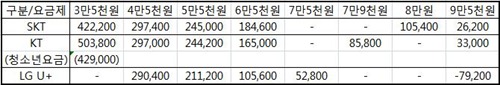 SKT¿Í KTÀÇ ½Ç ±¸¸Å°¡´Â ¿ù 4¸¸5õ¿ø ¿ä±ÝÁ¦ À̻󿡼­ ÃÖ´ë 2¸¸¿ø Â÷ÀÌ·Î, »ç½Ç»ó Å« Â÷À̰¡ ¾ø¾ú´Ù. ´Ù¸¸, SKT´Â °æÀï»ç¿Í ºñ±³ÇØ Àú°¡ ¿ä±ÝÁ¦¿Í °í°¡ ¿ä±ÝÁ¦¿¡¼­ ¿ä±ÝÇÒÀÎ Â÷À̰¡ ÀûÀº ÆíÀÌ´Ù.