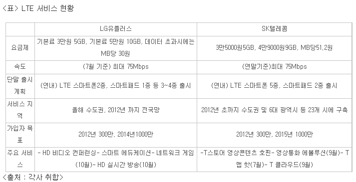 fjrigjwwe9r0UNIMO_MULTIBOARD:Brd_Contents 7¿ù 1ÀÏ 0½Ã¸¦ ½ÃÀÛÀ¸·Î SKÅÚ·¹ÄÞ°ú LGÀ¯Ç÷¯½º°¡ LTE ¼ºñ½º¸¦ ½ÃÀÛÇÏ¸é¼ ±¹³»¿¡¼µµ ¡®4G ½Ã´ë¡¯°¡ °³¸·Çß´Ù. LTE¼ºñ½º´Â ÆøÁõÇÏ´Â µ¥ÀÌÅÍ Æ®·¡ÇÈ ¹®Á¦¸¦ ÇØ¼ÒÇÏ°í »õ·Î¿î ¸ÖƼ¹Ìµð¾î ¼ºñ½º¸¦ ¿©´Â °è±â°¡ µÉ °ÍÀ¸·Î º¸ÀδÙ. µÎ »ç¾÷ÀÚ´Â ¼ºñ½º ¿ø³âÀÎ ¿ÃÇØ 30¸¸ °¡ÀÔÀÚ¸¦ ½ÃÀÛÀ¸·Î ´Ê¾îµµ 2015³â¿¡´Â 1000¸¸ °¡ÀÔÀÚ¸¦ µ¹ÆÄÇϰڴٴ °ÇÑ ÀÇÁö¸¦ ³»ºñÃÆ´Ù. ÀÌ¿¡ µû¶ó °ú¿¬ ±âÁ¸ ¿ÍÀ̺ê·Î¿Í Â÷º°ÈÇÏ¸é¼ ¼ÒºñÀÚ¸¦ ²ø¾îµéÀÏ LTE¸¸ÀÇ °íÀ¯ ¼ºñ½º¸¦ ¾î¶»°Ô °³¹ßÇÒÁö¿¡ °ü½ÉÀÌ ½ò¸®°í ÀÖ´Ù.