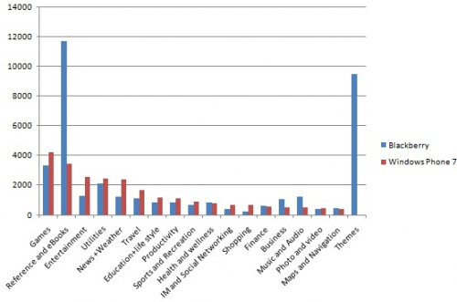 RIM ¾Û¿ùµå¿¡´Â ÇöÀç 28,305 °³ÀÇ ¾Û°ú °ÔÀÓÀÌ µî·Ï µÇ¾î ÀÖ°í, 9,462 °³ÀÇ Å׸¶°¡ µî·ÏµÇ¾î ÀÖ´Ù. ´Ü¼ø ¼ýÀڷθ¸ º¸¸é ¾ÆÁ÷ ºí·¢º£¸®°¡ ´õ ¸¹Àº ¾ÛÀ» º¸À¯Çϰí ÀÖÁö¸¸ ÀÚ¼¼È÷ ¶â¾î º¸¸é »óȲÀº ´Ù¸£´Ù.