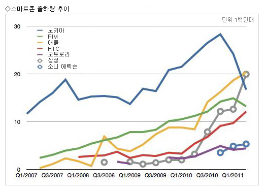 °á±¹ £§Æ¼ÇÎ Æ÷ÀÎÆ®£§¸¦ ³Ñ¾î¼± ½º¸¶Æ®Æù ½ÃÀå¿¡¼± º»°ÝÀûÀÎ »ýÁ¸°æÀïÀÌ ½ÃÀ۵ƴٴ ¾ê±â´Ù. ÀÌ·± °üÁ¡À¸·Î Á¢±ÙÇÒ °æ¿ì ³ëŰ¾Æ¿Í RIMÀÇ Ç϶ôÀº ¿¹»ç·Î¿ö º¸ÀÌÁø ¾Ê´Â´Ù. ´Ü¼øÈ÷ ÆÇ¸Å ´ë¼ö°¡ ÁÙ¾ú´Ù´Â ¹®Á¦°¡ ¾Æ´Ï¶ó, ±×µéÀÇ ±â¹Ý ÀÚü°¡ Èçµé¸®°í ÀÖ´Ù°í ºÁµµ Å©°Ô ±×¸£Áö ¾Ê±â ¶§¹®ÀÌ´Ù.