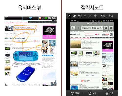 ¡Þ ¼¼¹ÐÇÔ¿¡¼± °¶·°½Ã³ëÆ®=µÎ Á¦Ç°Àº °°Àº ¸Þ¸ð ±â´ÉÀ» Ç¥¹æÇϰí ÀÖÁö¸¸ ½ÇÁ¦ »ç¿ë¹æ½Ä¿¡´Â Â÷À̰¡ ÀÖ´Ù. ȸéÀ» Ä¸Ã³ÇØ ¸Þ¸ðÇÏ°í ´Ù¸¥ »ç¶÷°ú °øÀ¯ÇÏ·Á¸é ¿ÉƼ¸Ó½ººä´Â Äü ¸Þ¸ð ¹öưÀ» ´©¸£¸é µÈ´Ù. ¹Ý¸é °¶·°½Ã³ëÆ®´Â SÆæ ¹öưÀ» ´©¸¥ »óÅ¿¡¼ ȸéÀ» Ŭ¸¯ÇØ¾ß ÇÑ´Ù. º»Ã¼¿¡ ÀåÂøµÇ¾î ÀÖ´Â SÆæÀ» »©°í ¼Õ¿¡ Áã±â±îÁöÀÇ ½Ã°£À» °í·ÁÇÏ¸é ¼Õ°¡¶ôÀ» Ȱ¿ëÇÒ ¼ö ÀÖ´Â ¿ÉƼ¸Ó½ººä°¡ ´õ ºü¸£´Ù.