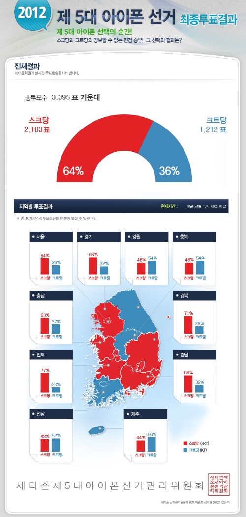 À̵¿Åë½Å Àü¹® Æ÷ÅÐ ¼¼Æ¼Áð(www.cetizen.com)ÀÌ ¿ÃÇØ 10¿ù 23ÀϺÎÅÍ 24ÀϱîÁö ¾çÀϰ£ ´ëÅë·É ¼±¼ Çü½ÄÀ» ºô¾î £§2012 5´ë ¾ÆÀÌÆù ¼±°Å, ±¹¹ÎÀÇ ¼±Åã§À» ÁÖÁ¦·Î ¾ÆÀÌÆù5¸¦ ±¸ÀÔÇÑ´Ù¸é ¼±È£ÇÏ´Â À̵¿Åë½Å»ç¸¦ Á¶»çÇß´Ù.