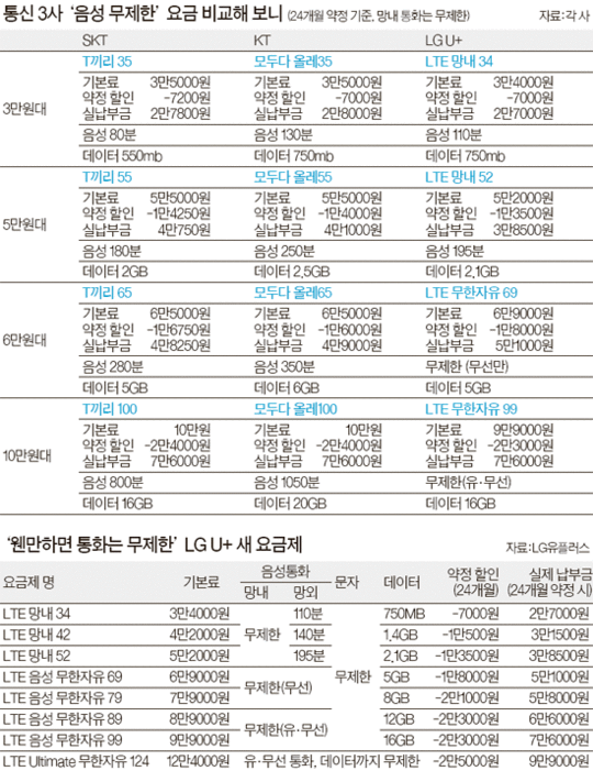 ¿ù 6¸¸9000¿ø ÀÌ»ó ¿ä±ÝÁ¦¸é SKT¡¤KT °¡ÀÔÀÚ¿Í ¹«Á¦ÇÑ ÅëÈ­