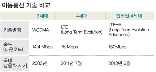 SKÅÚ·¹ÄÞÀÌ °³Åë ¿¹Á¤ÀÎ LTE-A´Â µÎ °³ÀÇ »óÀÌÇÑ Á֯ļö¸¦ °áÇÕÇØ ÇϳªÀÇ Á֯ļöó·³ »ç¿ëÇÏ´Â ¡®Ä³¸®¾î ¾Ö±×¸®°ÔÀ̼ǡ¯(CA) ±â¼úÀ» ÀÌ¿ëÇÏ´Â ¹æ½ÄÀ¸·Î LTEº¸´Ù µ¥ÀÌÅÍ Àü¼Û ¼Óµµ°¡ 2¹è ºü¸£´Ù. ÀÌ·ÐÀûÀ¸·Î °¡´ÉÇÑ ÃÖ°í ¼Óµµ´Â 150Mbps(ÃÊ´ç Àü¼ÛºñÆ® ¼ö)·Î, ÀÏ¹Ý °¡Á¤ÀÇ 100Mbps À¯¼±¸Áº¸´Ùµµ ºü¸£´Ù.