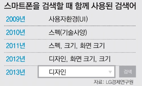 ½º¸¶Æ®ÆùÀ» »ç´Â ¼ÒºñÀÚµéÀÌ Áß½ÃÇÏ´ø ¿äÀÎÀÌ °ú°Å »ç¿ëÀÚȯ°æ(UI), ±â¼ú¿¡¼­ ÃÖ±Ù µðÀÚÀÎÀ¸·Î ¹Ù²ï °ÍÀ¸·Î ³ªÅ¸³µ´Ù. LG°æÁ¦¿¬±¸¿øÀº 10ÀÏ ¡®°Ë»ö µ¥ÀÌÅ͸¦ º¸¸é ¼Òºñ Æ®·»µå°¡ º¸Àδ١¯ º¸°í¼­¸¦ ÅëÇØ ½º¸¶Æ®Æù ¼ÒºñÀÚµéÀÇ Á¦Ç° ¹× ¼­ºñ½º ±¸¸Å ¿äÀÎÀ» À̰°ÀÌ ºÐ¼®Çß´Ù.